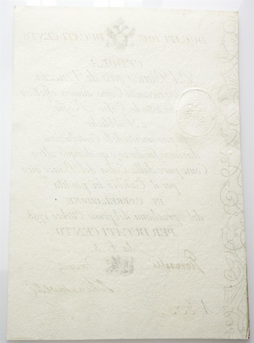 Cedola Banco Giro di Venezia. 100 Scudi 1798, firme Giovanelli - Fovel - Schiantarelli.