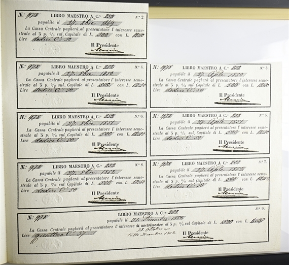 Governo Provvisorio della Repubblica Veneta. Buoni del Prestito, 1848-1849. Buoni del prestito forzoso di tre milioni (di Venezia) decreto n. 3227 del 12 Ottobre 1848. 500 Lire, 17 Agosto 1849.