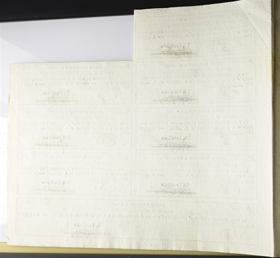 Bollo a secco ovale uguale per tutti con “Prestito e Leone di San Marco”.