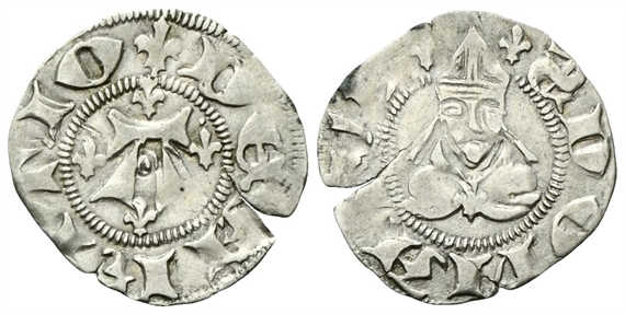 Dr. (giglio) DE ARITIO. Grande A accostata da quattro gigli. Rv. (giglio) S(rovesciata) DONATVS (giglio). Busto del Santo di prospetto mitrato.