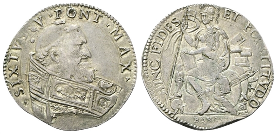 Sisto V (Felice Peretti), 1585-1590. Testone.