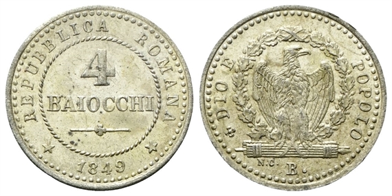 Seconda Repubblica Romana, 1848-1849 4 Baiocchi 1849.