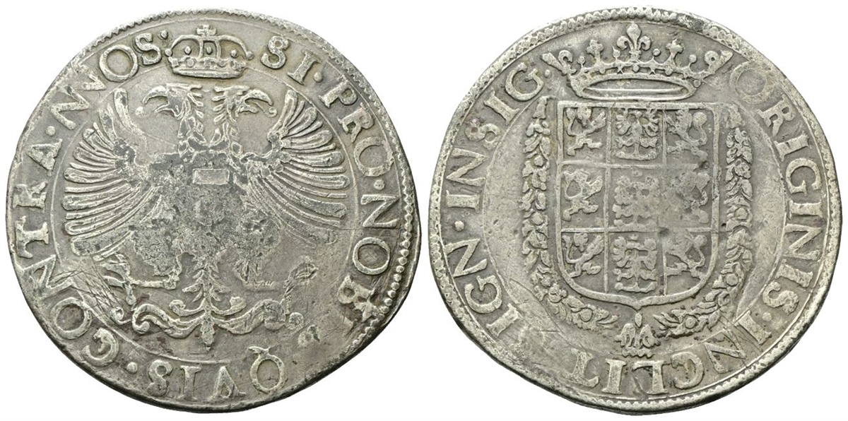 Dr. SI • PRO • NOBIS • QVIS • CONTRA • NOS •. Aquila bicipite coronata con scudetto austriaco caricato al petto. Rv. ORIGINIS • INCLIT• SIGN • INSIG. Stemma da Correggio coronato e circondato da corona di foglie.