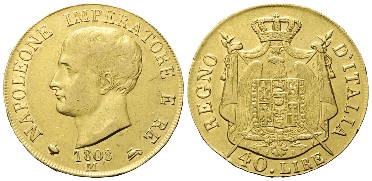Napoleone I Re d’Italia, 1805-1814. 40 Lire 1808, I Tipo, puntali aguzzi.