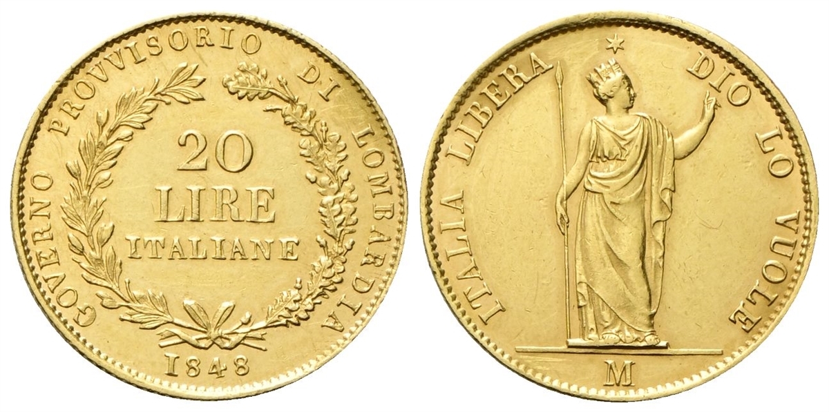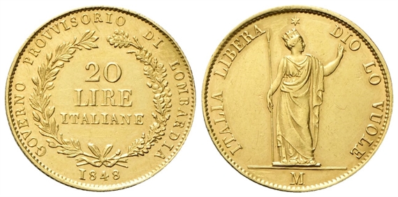Governo Provvisorio di Lombardia, 1848. 20 Lire 1848.