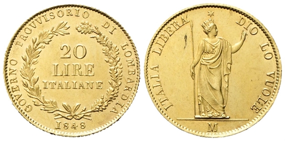 Governo Provvisorio di Lombardia, 1848. 20 Lire 1848.