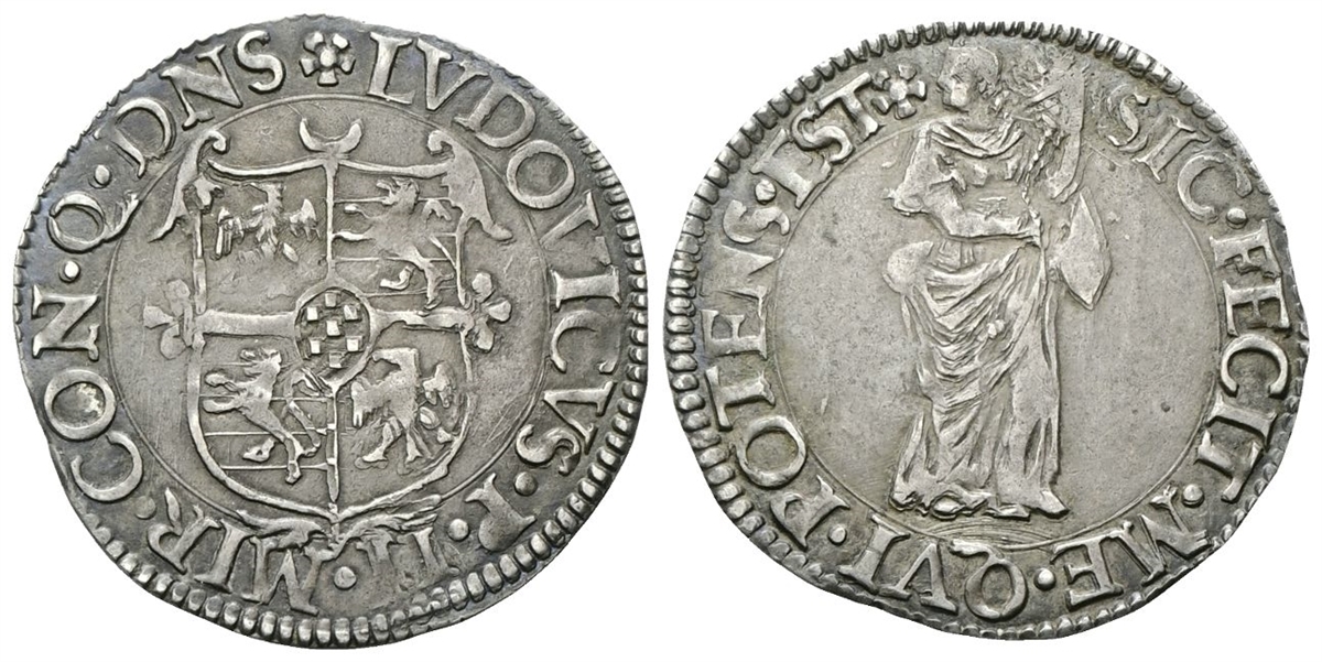 Dr. ✿LVDOVICVS •P •II •MIR• CON• Q•DNS. Stemma ornato e sormontato da una mezzaluna. Rv. SIC •FECIT• ME• QVI •POTENS• EST✿. Donna stante e frontale, testa a s., stringe al petto una cornucopia.