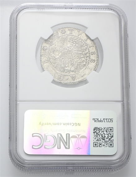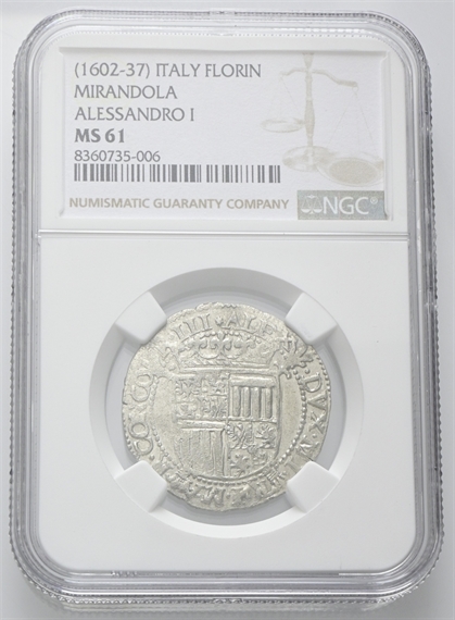 Dr. ✶ALEX - •DVX• MI - R• I• MA -R• CONCO - R• III. Stemma coronato su due bastoni decussati. Rv. ✿TVTISSIMA ✶QVIES✿. Aquila bicipite coronata.