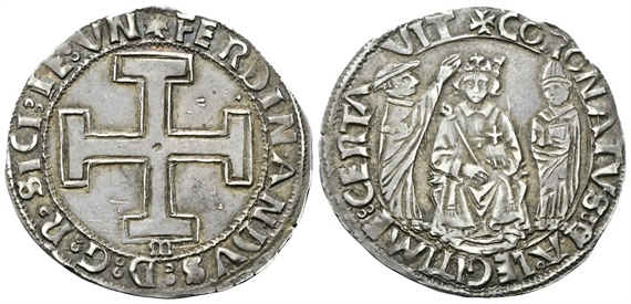 Ferdinando I d’Aragona (Ferrante), 1458-1494. Coronato, sigla M.