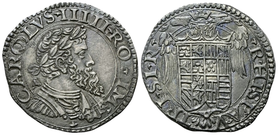 Carlo V D’Asburgo, Re di Spagna, Sicilia, Napoli, 1516-1556, Imperatore, 1519-1556. Da due Carlini o Tarì.
