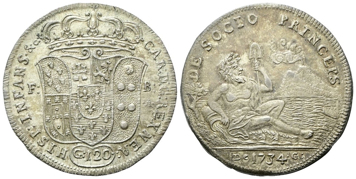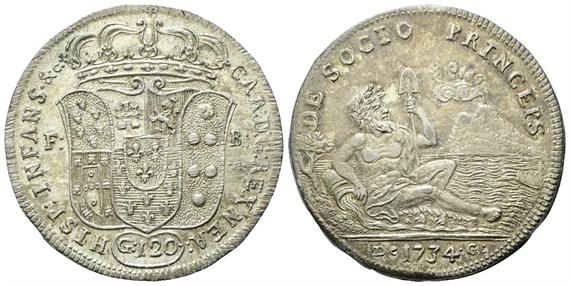 Carlo di Borbone, 1734-1759. Piastra da 120 Grana 1734 - I Tipo.