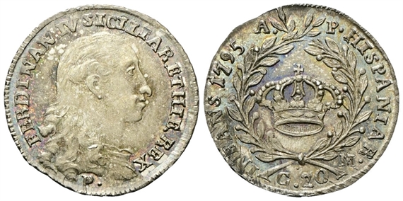 Ferdinando IV (I) di Borbone, 1759-1816. Tarì da 20 Grana 1795.