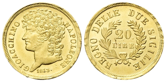 Gioacchino Napoleone Murat, 1808-1815. 20 Lire 1813 rami corti.