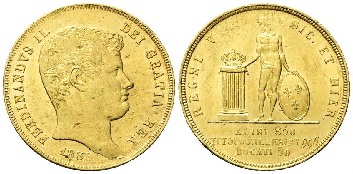 Ferdinando II di Borbone, 1830-1859. 30 Ducati 1833 - I Tipo.