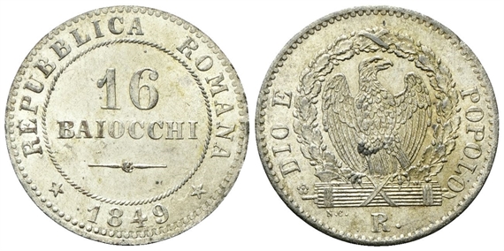 Seconda Repubblica Romana, 1848-1849. 16 Baiocchi 1849.