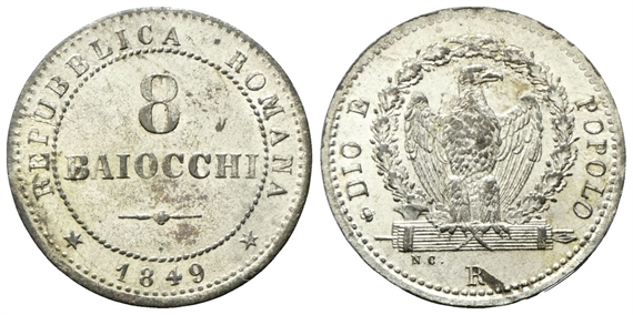 Seconda Repubblica Romana, 1848-1849. 8 Baiocchi 1849.