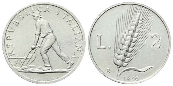 Repubblica Italiana, dal 1946. 2 Lire 1946.