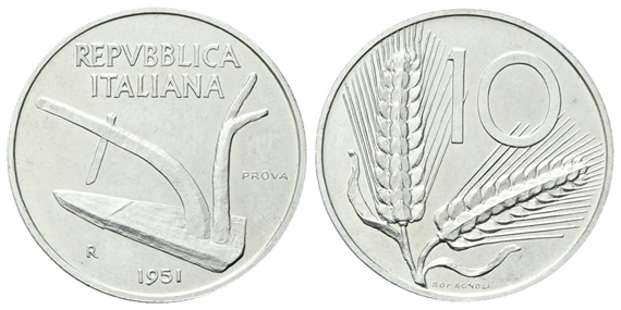 Repubblica Italiana, dal 1946. 10 Lire 1951 PROVA.