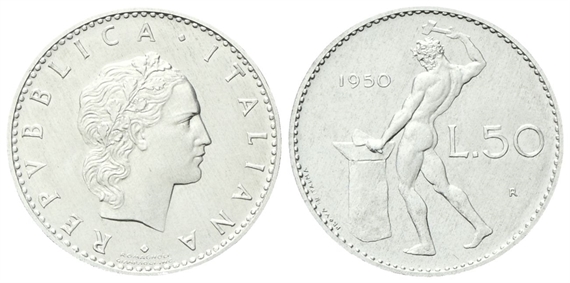 Repubblica Italiana, dal 1946. 50 Lire 1950 PROVA in italma.
