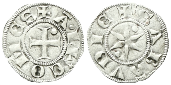 Dr. +A•ME(due stelle) COMES. Croce patente; nel I quarto, bisante. Rv. +SABAVDIE. Stella a sei punte con due globetti.