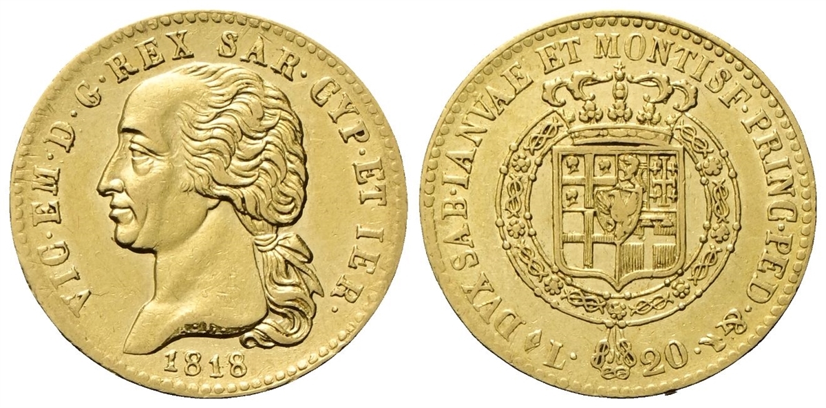 Vittorio Emanuele I, 1802-1821. 20 Lire 1818 Torino, I° Tipo.