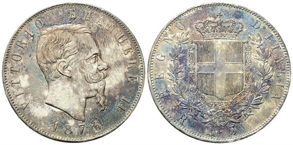 Vittorio Emanuele II, 1861-1878. 5 Lire 1876 Roma.