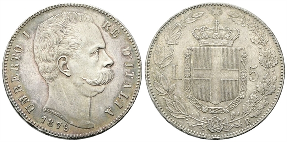 Umberto I, 1878-1900. 5 Lire 1879 Roma, II° Tipo.