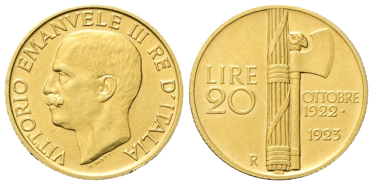 Vittorio Emanuele III, 1900-1943. 20 Lire 1923 Roma, Fascetto.