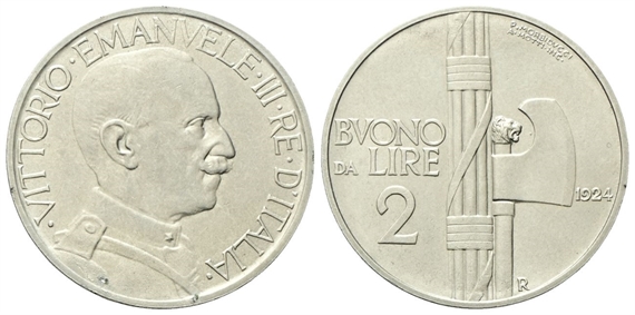 Vittorio Emanuele III, 1900-1943. Buono da 2 Lire 1924 Roma, Fascio.