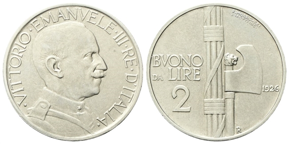 Vittorio Emanuele III, 1900-1943. Buono da 2 Lire 1926 Roma, Fascio.