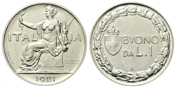 Vittorio Emanuele III, 1900-1943. Buono da 1 Lira 1921 PROVA Roma, Italia Seduta.