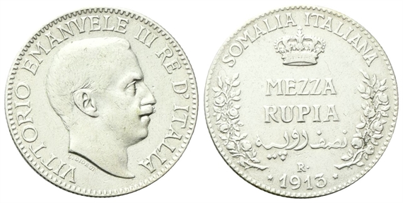Vittorio Emanuele III, 1909-1925. Mezza Rupia 1913 Roma.