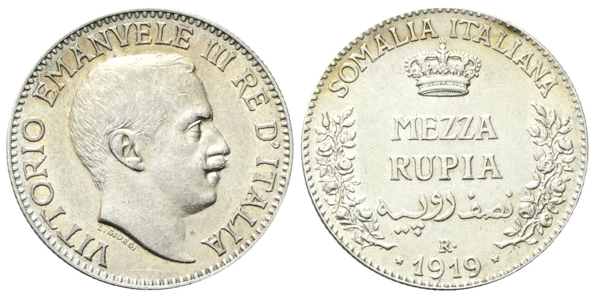 Vittorio Emanuele III, 1909-1925. Mezza Rupia 1919 Roma.