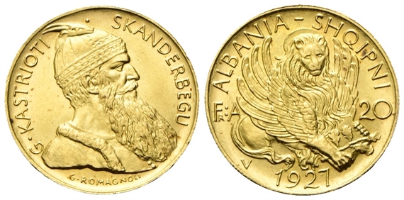 Dr. Busto di Skanderbeg a d. Rv. Leone di San Marco.