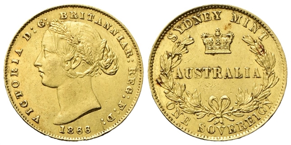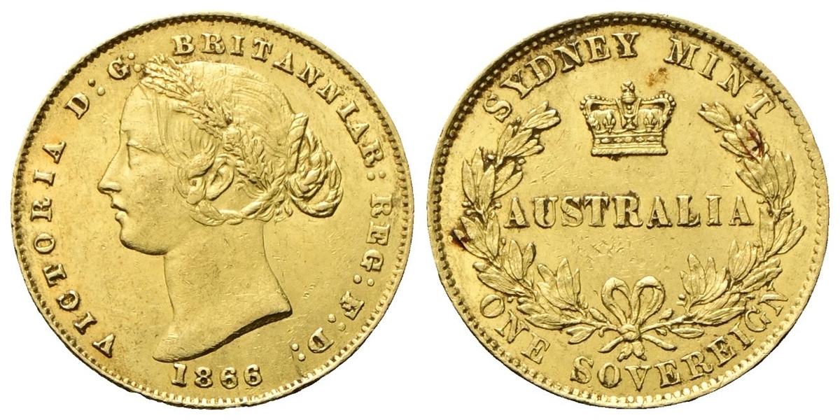 Regina Vittoria, 1837-1901. Sterlina 1866, zecca di Sydney.