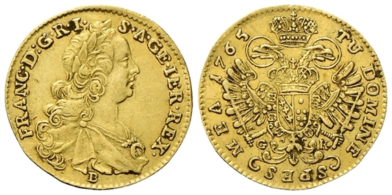 Franz I, 1745-1765. Ducato 1765, Vienna, B / G K.