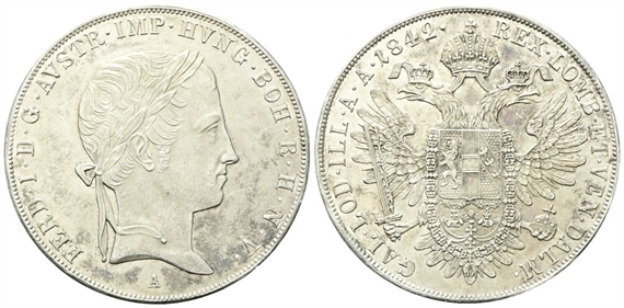 Ferdinando I, Imperatore d'Austria e re del Lombardo-Veneto, 1835-1848. Tallero 1842 A, Vienna.