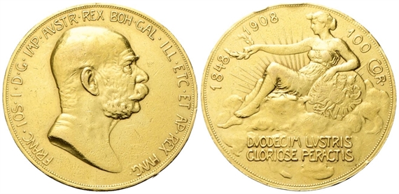 Francesco Giuseppe I d’Asburgo Lorena, 1848-1916. 100 Corona 1908.