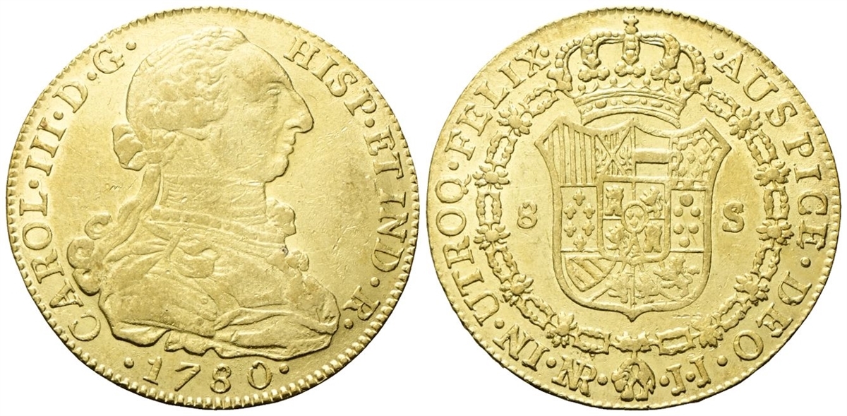 Carlo III, 1759-1788. 8 Escudos 1780 NR - JJ, Bogotà.