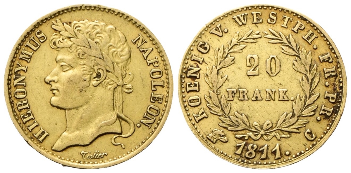 Westphalia. Geronimo Napoleone, 1807-1813. 20 Franchi 1811 C.