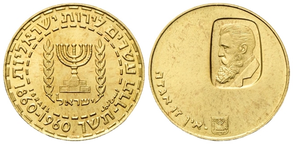 Repubblica, dal 1949. 20 Lirot 1960, Theodor Herzl, zecca di Berna.