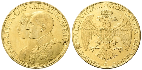 Alessandro I, 1921-1934. 4 Ducati 1931, (contromarcato-pannocchia).