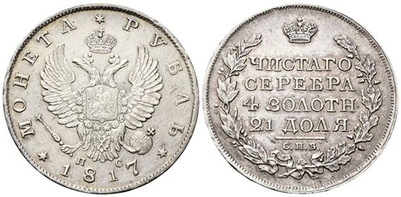 Alessandro I, 1801-1825. Rublo 1817, zecca di San Pietroburgo.