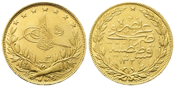 Mehmed V Reşâd, 1909-1918. 100 Piastre (1327-1341) 1912.