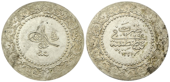 Mehmed V Reşâd, 1909-1918. 10 Kurush ? Deluxe/Medaglia AH 1327 (1916).