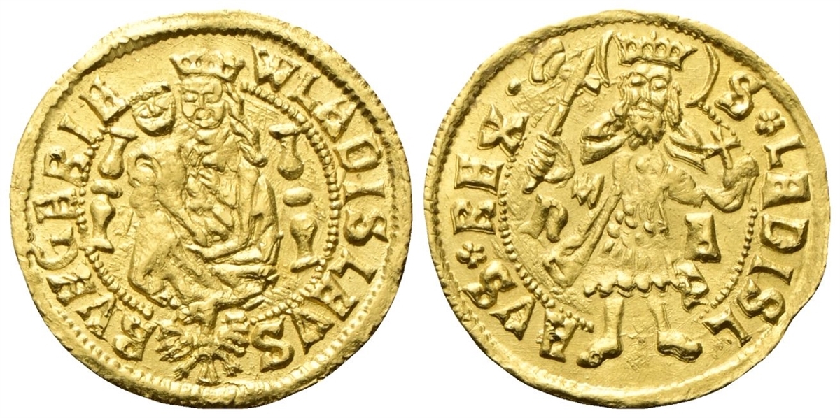 Dr. W LADILAVS (aquiletta) B VNGARIE. La Vergine Rv. S✿ LADISL - AVS ✿REX•. San Ladislao con ascia da battaglia e globo crucigero; ai lati, n - A.