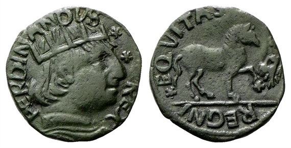 Dr. FERRANDVS ✶✶ REX. Testa radiata a d. Rv. ✶EQVITAS / REGNI. Cavallo gradiente verso d.; davanti, aquiletta.
