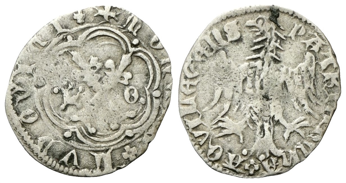 Ludovico I, 1359-1365. Denaro con scettri ed aquila.