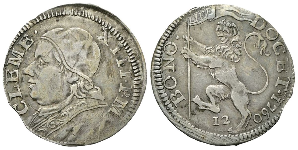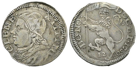 Dr. CLEME• - XIII• P •M. Busto a s. con camauro. Rv. BONO• - DOCET • 17 - 60. Leone vessillifero rampante verso s.