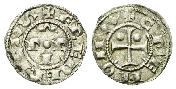 Dr. +FREDERICVS. Le lettere P R I disposte attorno a globetto. Rv. +CREMONA. Croce; nel 1° e 2° quarto, un globetto; nel 3°e 4°quarto, cuneo.